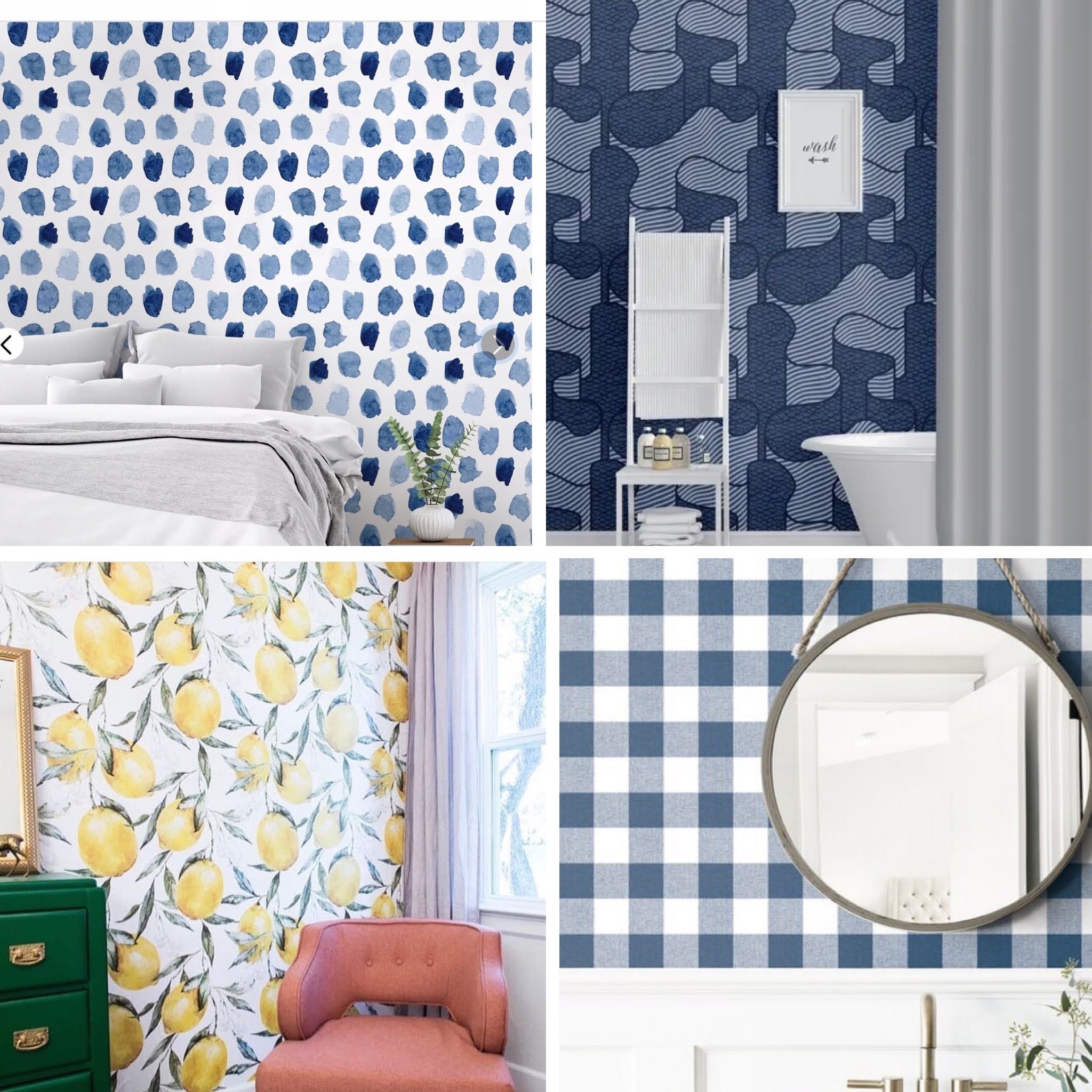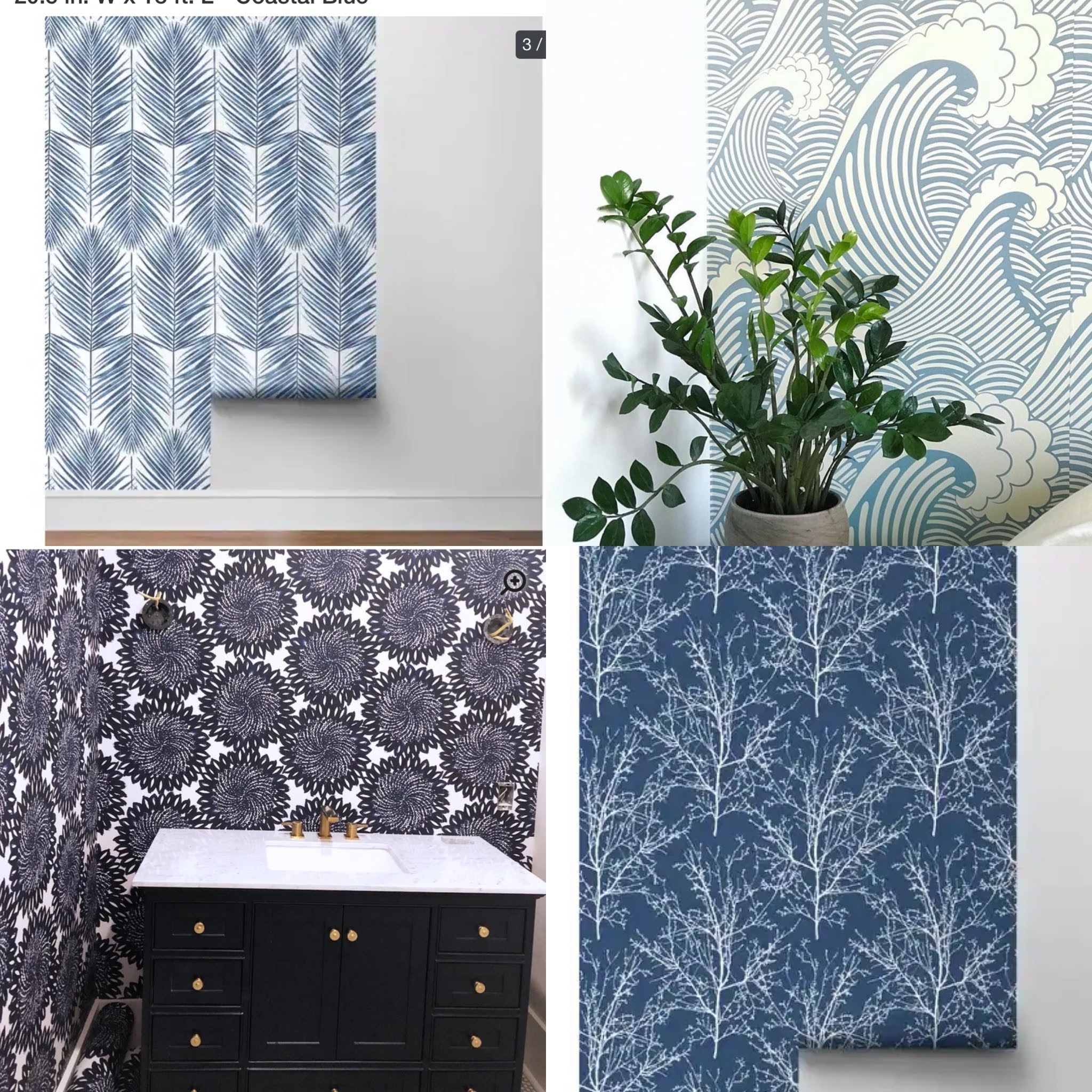 I was very very torn between a bold blue paint (dark, basically navy) or a fun wallpaper. I know what you are thinking – Wallpaper is in and has been “back” for years. However, I have NEVER worked with it. But after an instagram poll – 92% of the feedback came back supporting wallpaper. The peel and stick which is both easy to apply & (apparently) remove.